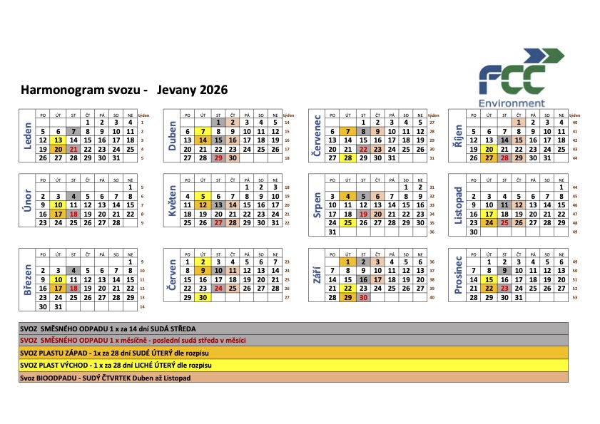 Svoz směsného komunálního, bioodpadu a vybraného separovaného odpadu zajišťuje FCC Česká republika, s.r.o.